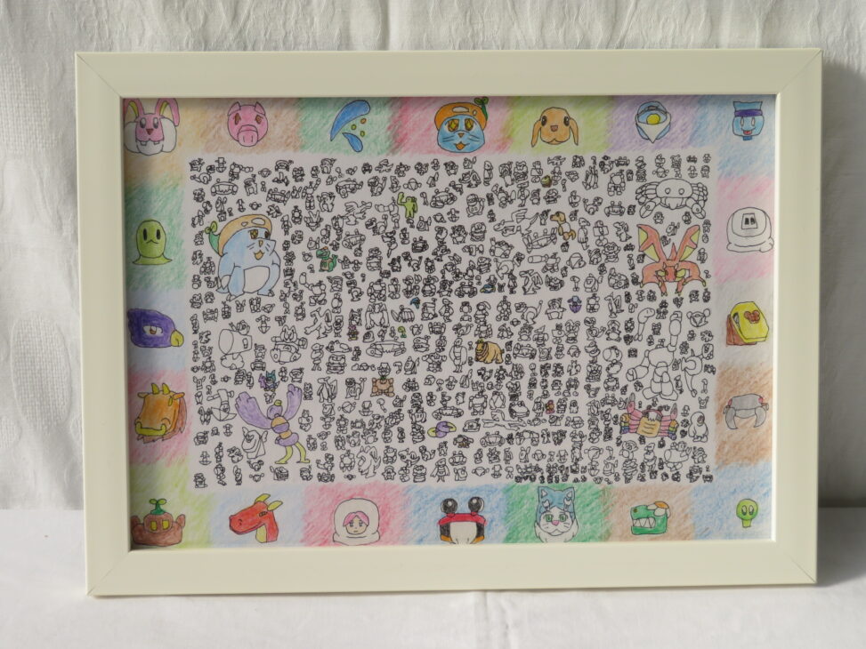 | 感 想: | リタシードをイメージしたモンスターたちを作りました。 ちいさく描くのはすきですが、ここまでたくさんキャラをうめるのはとても大変でした。キャラをわかりやすくするため、キャラデザを工夫して考えたり、キャラ数にかたよりがでないように工夫したりしました。 |